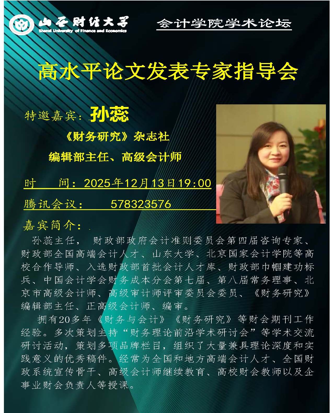 学术论坛第216期在线上如期举行。本期论坛特邀《财务研究》编辑部孙蕊主任担任主讲嘉宾,为皇冠体育