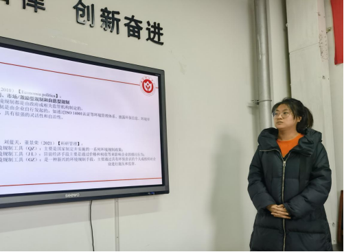 王婉婷老师首先进行报告,题目为:环境规制的涵义、绿色经济后果及研究展望。汇报的内容主要包括:环境规制的涵义与分类,环境规制及其组合的绿色创新、绿色增长、绿色全要素生产率和全要素碳生产率等绿色经济后果,并对环境规制的相关绿色研究进行了总结与展望。王老师汇报结束后,皇冠体育