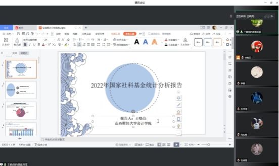 以线上会议的形式举行了第162次学术论坛,由王晓亮老师分享2022年国家社会科学基金项目情况。