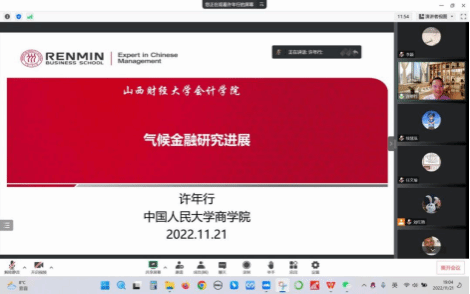 -智能管理会计研究院以线上会议的形式邀请了中国人民大学许年行教授做专题讲座。许教授的报告题目为《气候金融研究进展》。