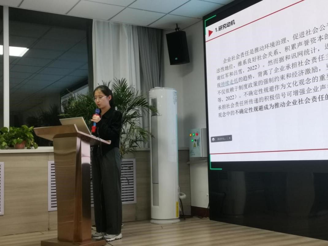 牛晓媛硕士生汇报了工作论文《文化观念与企业社会责任:基于不确定规避视角》。