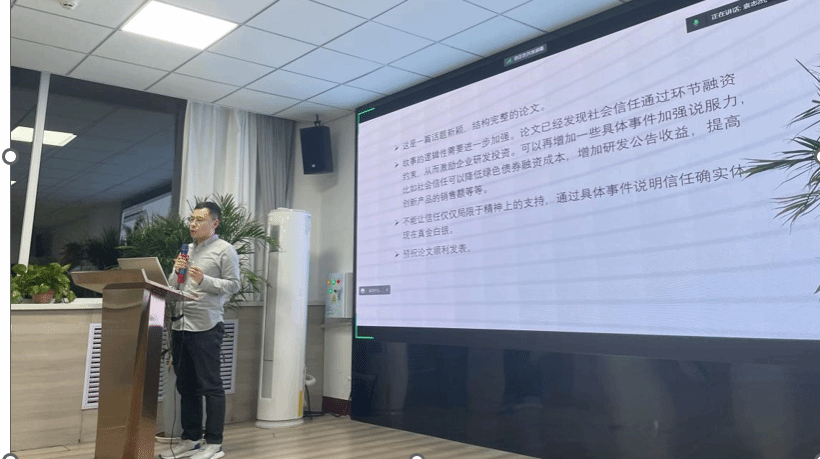 袁志杰硕士生汇报了自己的工作论文,题目为《社会信任与企业研发投资》。