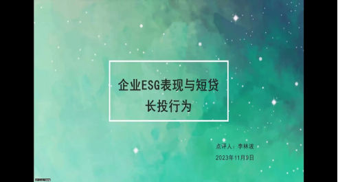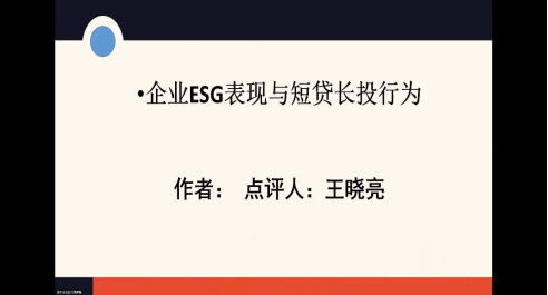 硕士研究生张媛媛同学汇报了自己的论文,题目为《企业ESG表现与短贷长投行为》。
