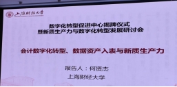 讲席教授、安徽财经大学学术副校长何贤杰做报告。何教授以《会计数字化转型、数据资产入表与新质生产力》为题,深入解读了会计技术的变革和会计思想的创新。在大模型时代,需要强化互动式的财务报告分析,深度融合会计场景与大模型,大力发展垂直领域的大模型,才能更好实现会计数字化转型。我国数字经济发展迅速,数据要素市场潜力巨大,需要推动数据资产入表,释放数据要素价值,而数据资产暂行规定尚不能充分释放数据要素价值,需要创新会计基础理论。何教授从数据资源资产的概念界定等视角分析了数据资产入表的难点与问题,数据资产部分成本难以分离,且与实际价值差异较大,同时其预期收益及期限等都与传统资产考量有所不同,且数据资产间差异大需要考虑更多修正因素,所以需要创新会计理论和标准,构建“第四张报表”。