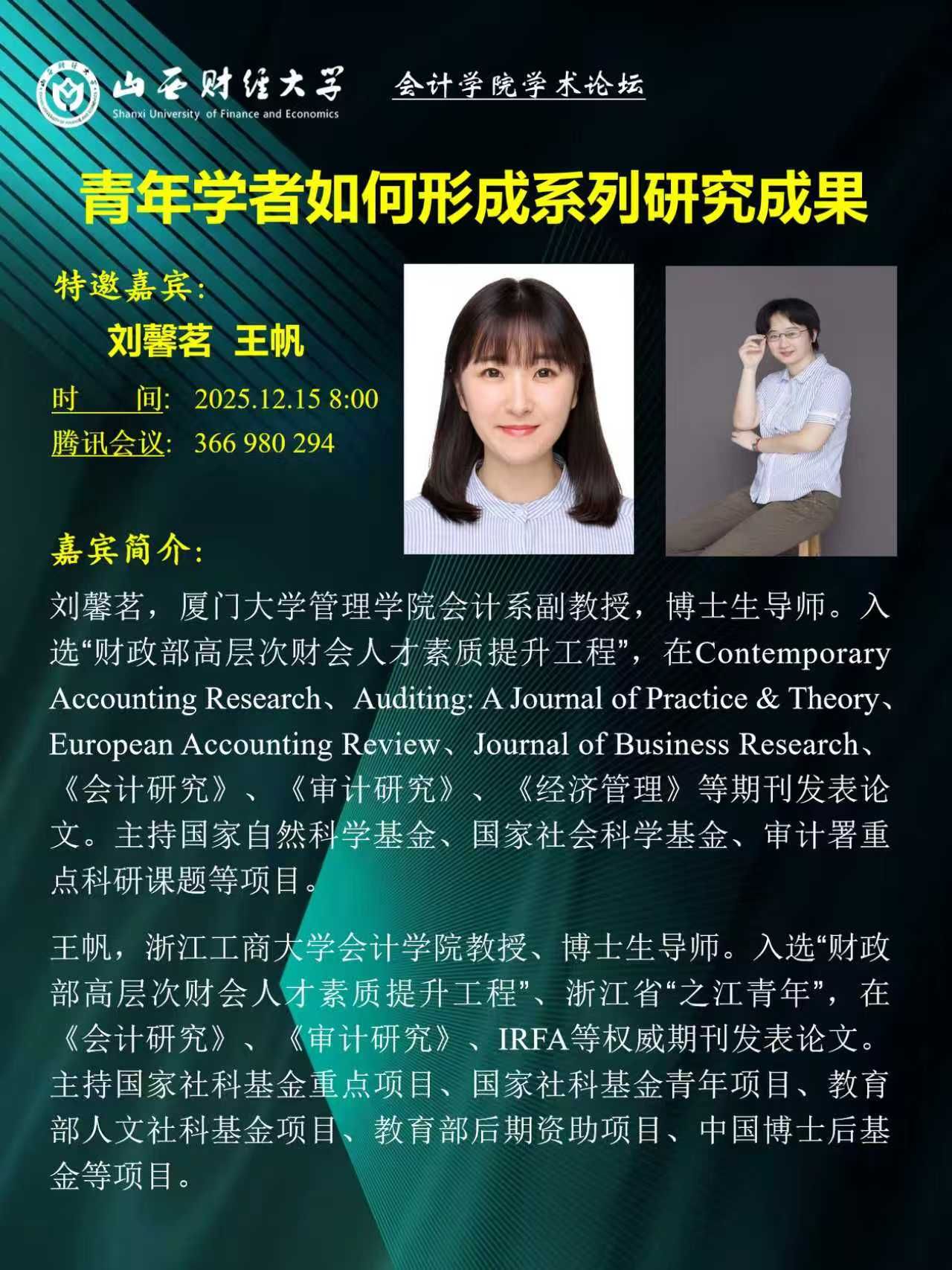 刘馨茗副教授长期聚焦审计委员会治理、会计信息质量、公司合规监管等前沿研究方向,其成果发表于《Contemporary Accounting Research》《Review of Quantitative Finance and Accounting》《European Accounting Review》等国际顶尖学术期刊,以及《会计研究》等国内权威期刊,部分研究成果正处于顶级期刊修改再审阶段,学术影响力广受认可。论坛上,她以自身研究轨迹为脉络,从“选题锚点”“理论支撑”“方法设计”“成果延展”四个维度,系统拆解了系列研究成果的形成逻辑。