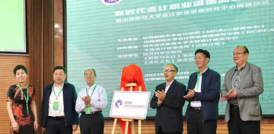 党委书记任海生、院长吴秋生,会计职业道德研究中心主任王玉兰,山西省财政厅会计处处长邢绪生,对外经济贸易大学叶陈刚教授共同为“皇冠体育