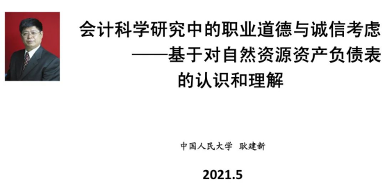耿建新教授在北京通过视频连线做了题为“会计科学研究中的职业道德与诚信考虑”的专题演讲,耿教授基于对自然资源资产负债表的认识和理解,畅谈会计科学研究中的职业道德与诚信观,呼吁会计学者面对一些需要澄清的事项,应当有勇气力争通过自己的语言将未来的事情做的更好。