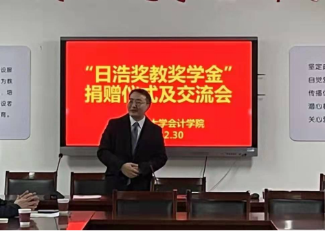 邓达奇博士介绍日浩奖教奖学金的初衷与筹备情况,表达了对母校和会计皇冠体育