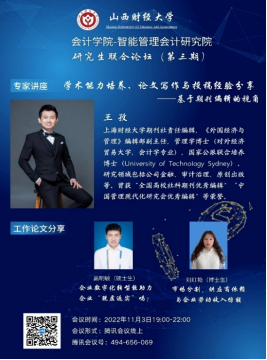 与智能管理会计研究院联合举办的研究生论坛(暨博硕士生学术沙龙活动)第三期以线上会议的形式举行。参会人数达180余人。