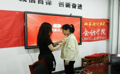 7名同学光荣地成为了中国共产主义青年团的一员。公布名单之后,团员代表为新团员佩戴团徽,团徽承载着团员们的志向与梦想,它将团员的使命和担当延续下去,激励着一代又一代的团员青年继承发扬共青团的优良传统。