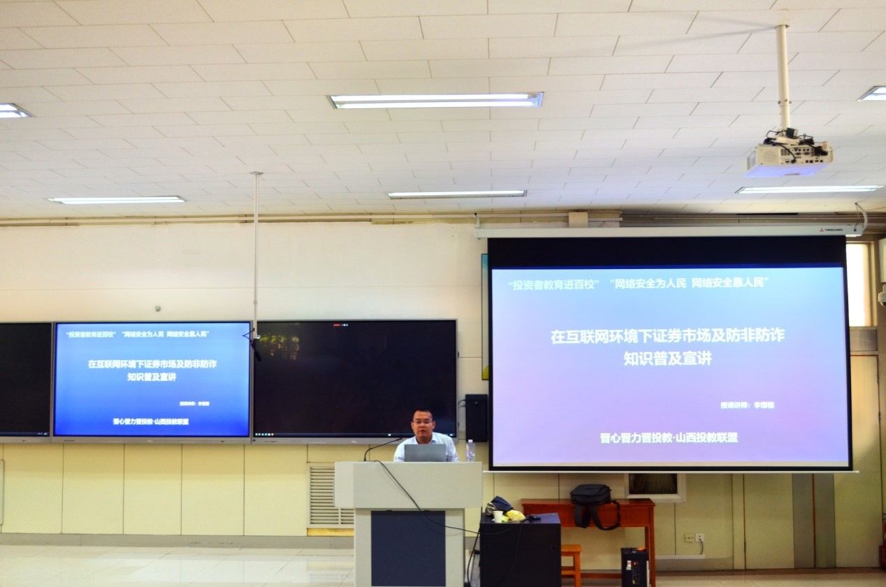 为响应中共中央办公厅、国务院办公厅联合印发的《关于加强打击治理电信网络诈骗违法犯罪工作的意见》中关于要坚持打防结合、防范为先,强化预警劝阻,加强宣传教育的号召,提高同学们的防非反诈意识,皇冠体育 团委联合山西证券于521日开展了互联网环境下证券市场及防非防诈知识普及宣讲。