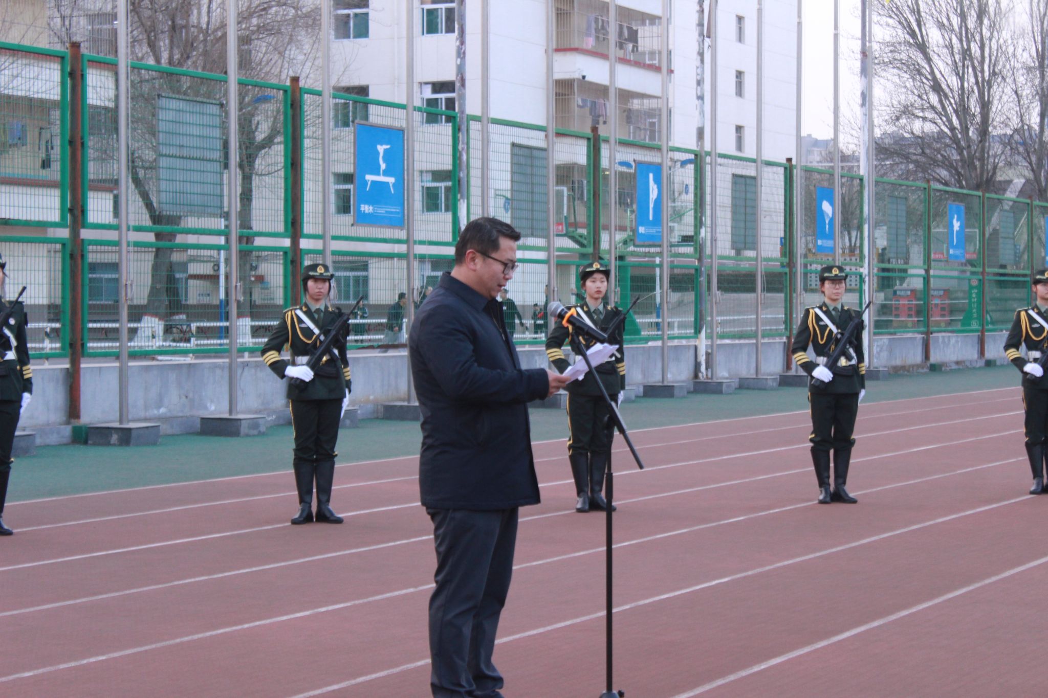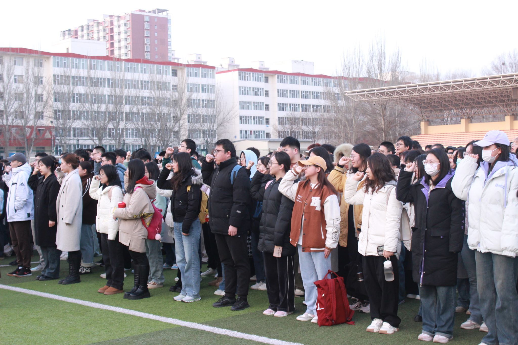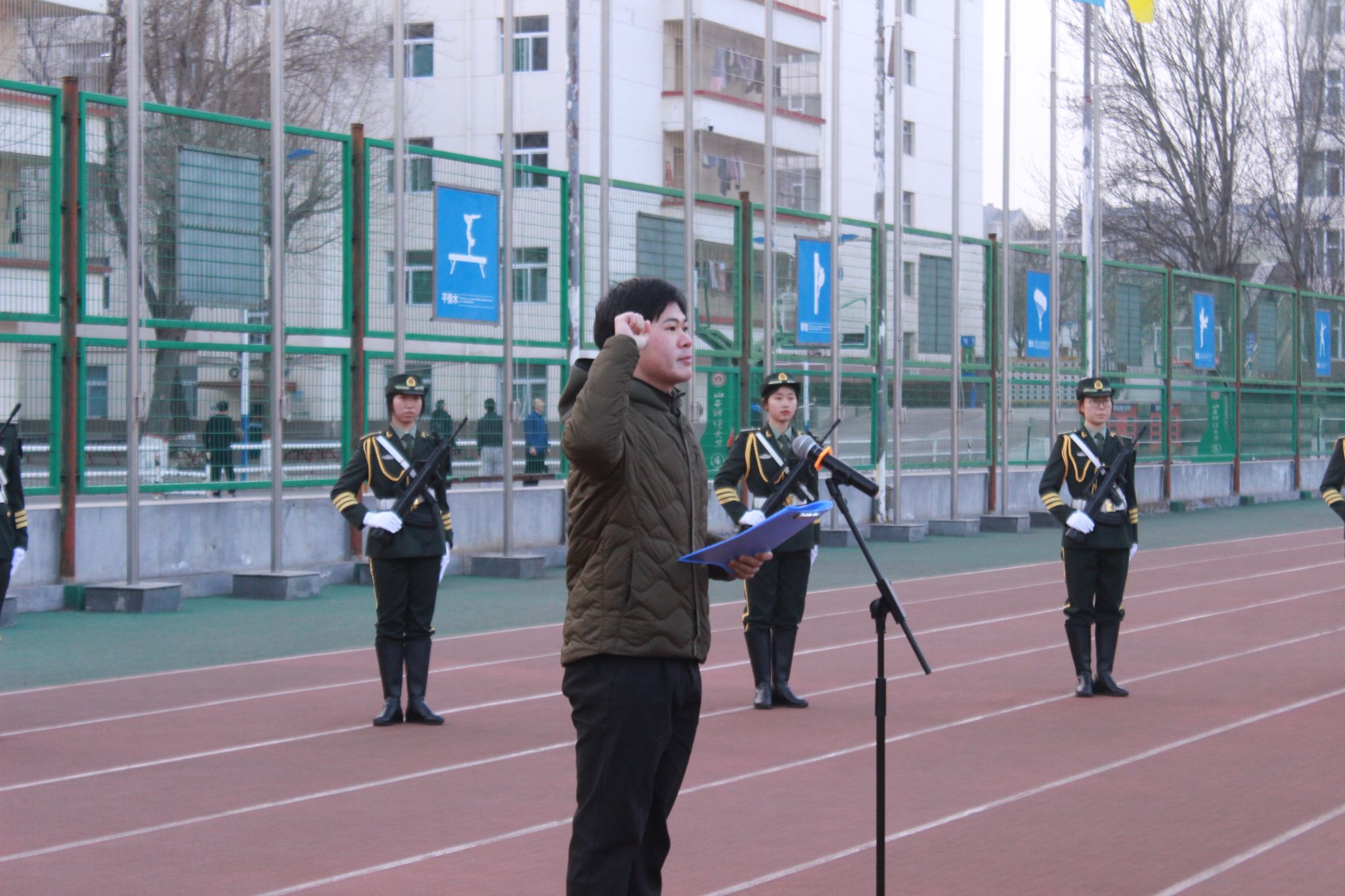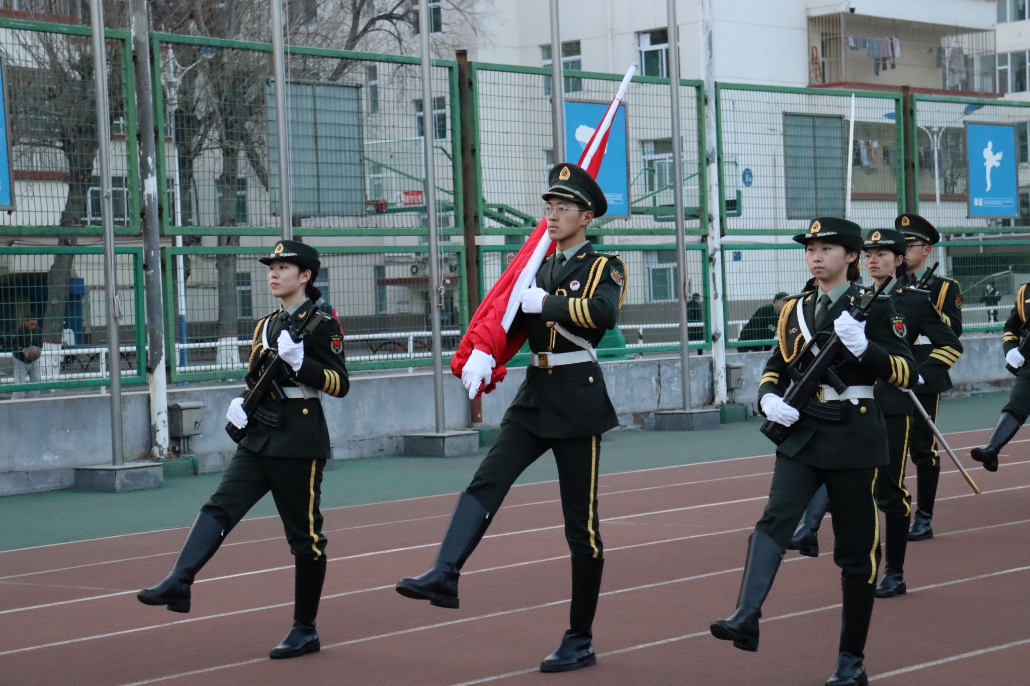 在坞城校区体育运动场举行升国旗仪式。皇冠体育