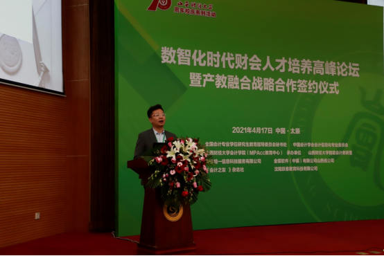 2021年4月17日,由皇冠体育 皇冠体育 MPAcc教育中心)主办,金蝶精一信息科技服务有限公司、金蝶软件(中国)有限公司山西省公司协办,并得到《会计之友》杂志社、沈阳跃客教育科技有限公司等单位支持的数智化时代财会人才培养高峰论坛暨产教融合战略合作签约仪式”在皇冠体育 国际学术交流中心一层报告厅举办。来自全国各地的百余位高校教师及皇冠体育 师生300余人参加了此次高峰论坛,同时通过线上网络直播观看论坛的人数达两万余人。