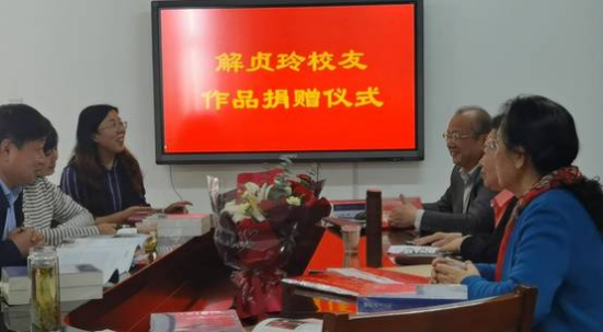 419日,在皇冠体育 建校七十周年校庆来临之际,皇冠体育 著名校友、作家、书法家、中国作家协会会员解贞玲老师不忘师恩,心系母校,于立信楼皇冠体育 会议室举行了作品捐赠仪式。皇冠体育 党委书记任海生、院长吴秋生、党委副书记董中霞,副院长袁春生、田岗、郭宗文出席本次捐赠仪式。
