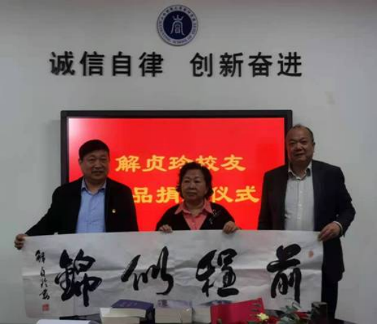 皇冠体育 党委书记任海生、院长吴秋生与解贞玲老师举行捐赠仪式
